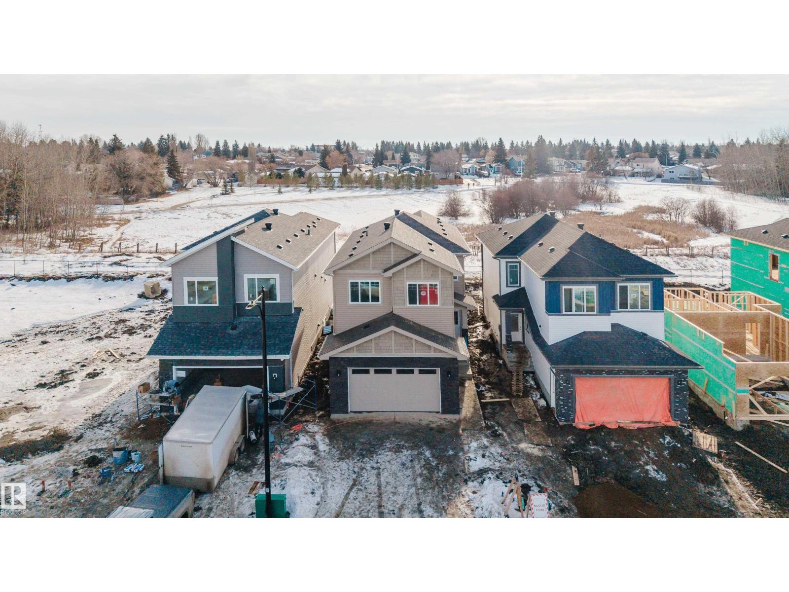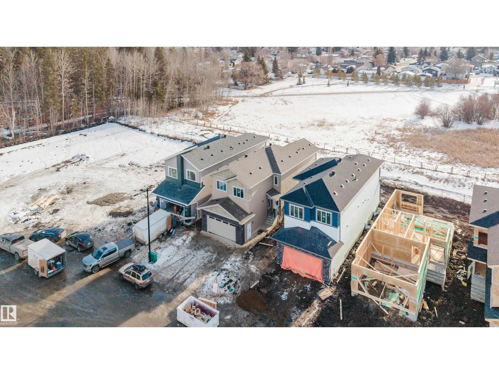 Backing onto a park and recreation area in the community of McLaughlin, Spruce Grove, this brand-new home offers a modern layout designed for comfortable family living. The main floor features a den and a full bathroom with a standing shower, perfect for guests, a home office, or a quiet retreat. The bright open-to-below living room with a fireplace creates an inviting, light-filled space. The wrap-around kitchen boasts a large island, quartz countertops, soft-close modern cabinetry, luxury vinyl plank flooring, and is complemented by contemporary light fixtures throughout. Upstairs, you’ll find 3 bedrooms and a second den, along with a spacious bonus room and convenient laundry area, offering flexibility and comfort for the whole family. A side entrance provides excellent potential for future basement development, while the double attached garage adds year-round convenience. Backing onto green space with park and recreation views, this home combines style, functionality, and a family-friendly setting. (id:2469)