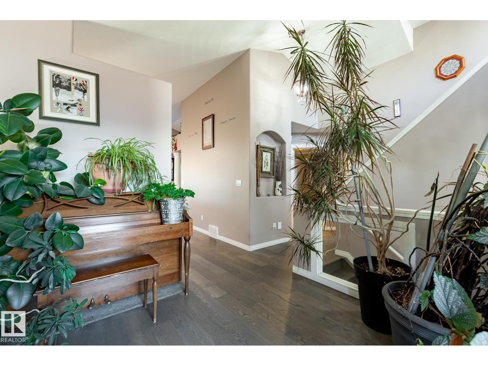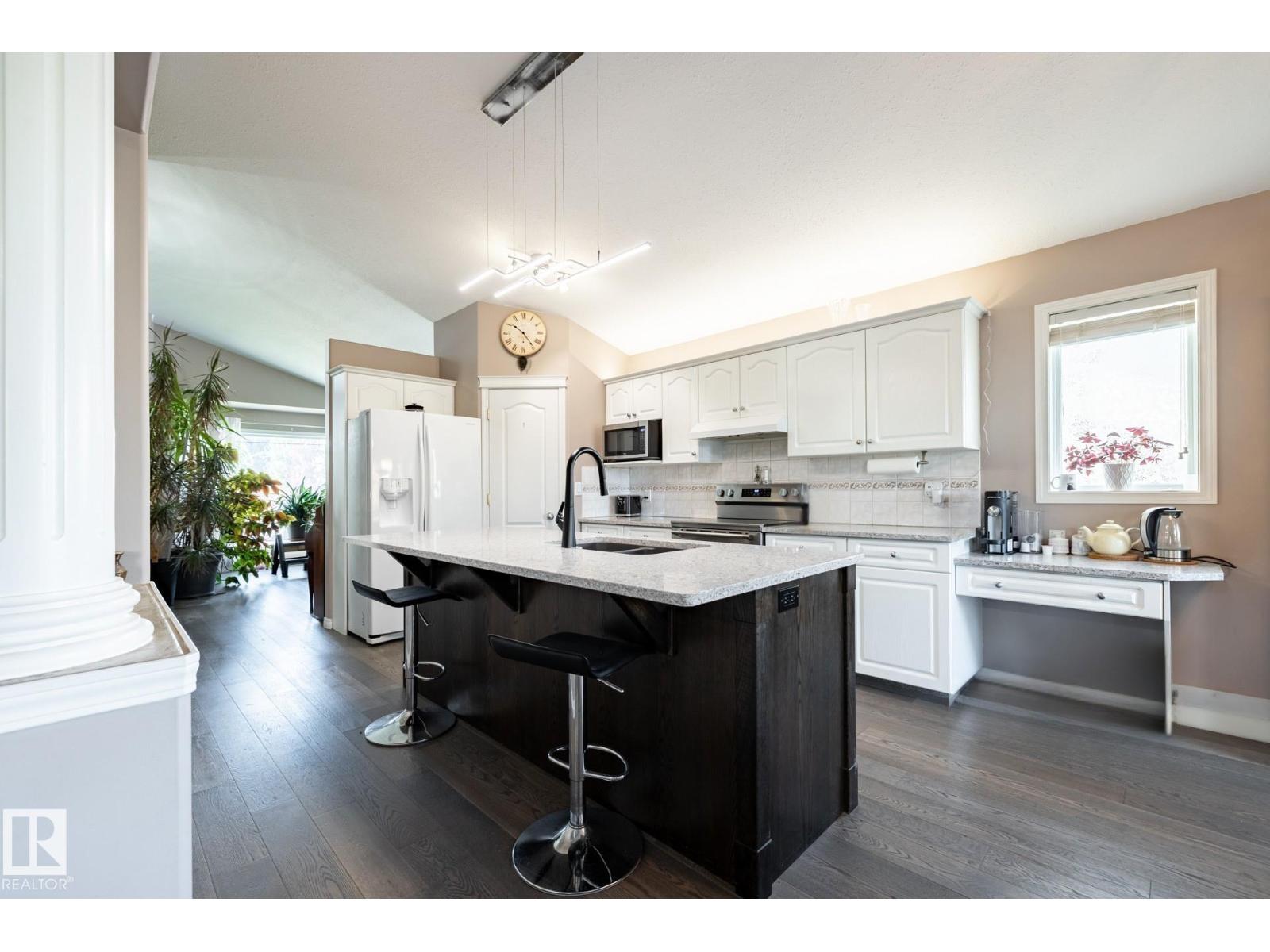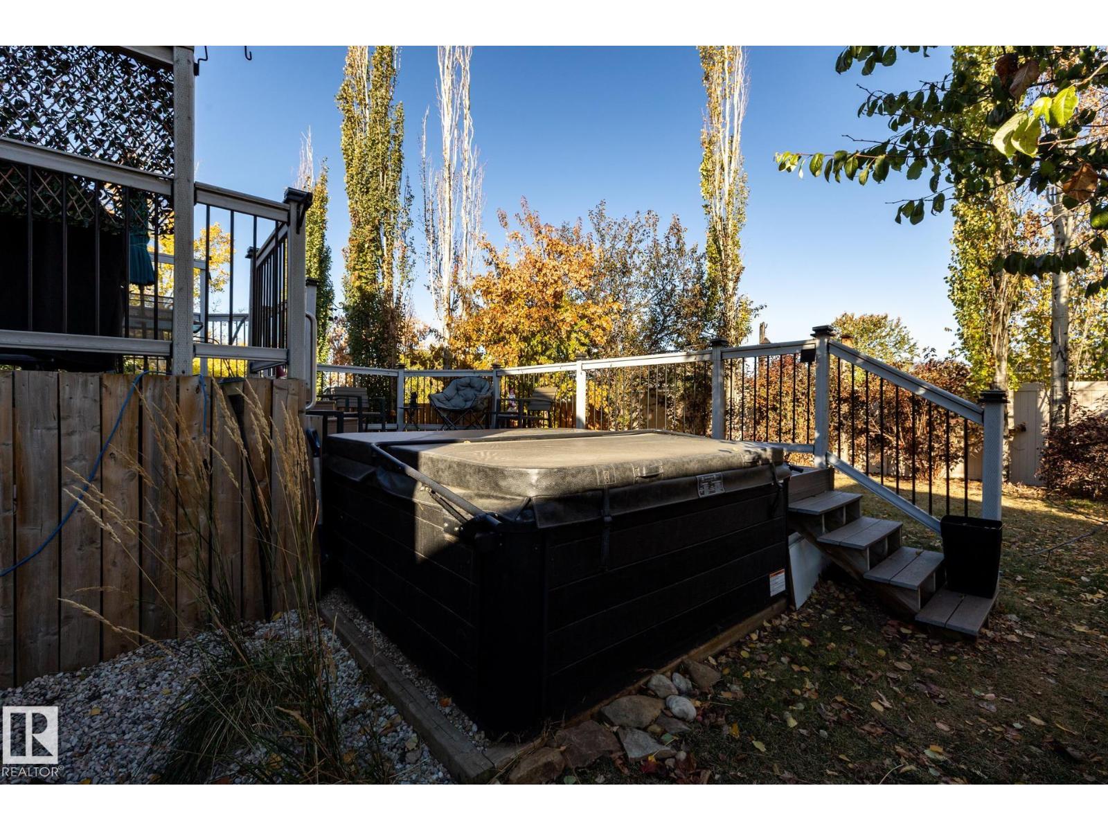 Welcome to Deer Park, a desirable west-side Spruce Grove community offering quick access to HWY 16. This inviting, air-conditioned modified bi-level built in 2000 offers over 2500 sq ft of living space & a heated, 18'Wx21'L double attached garage. Main floor: vaulted living room, kitchen & dining area, cozy family room w/ gas fireplace, two bedrooms & 4-pc bath. The private primary suite above the garage includes a walk-in closet & 3-pc ensuite. The basement is super bright featuring a spacious recreation room, updated 3-pc bath, 4th bedroom, storage room, laundry room & flexible den that could easily become the 5th bedroom or hobby room. Updates: shingles, furnace, hot water tank, engineered hardwood, vinyl plank flooring, carpet, quartz countertops in kitchen, custom built 8ft island, updated kitchen cabinetry, blinds, electric stove, and dishwasher. Enjoy patio door access to the two-tiered deck w/ hot tub & private fenced yard with mature trees/landscaping. Move in ready! (id:2469)